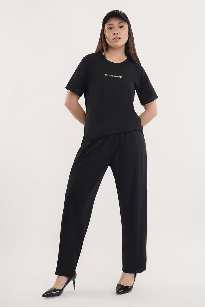 Black ‘CREATIVE DIRECTOR’ Co-ord set with Loose Straight Bottoms