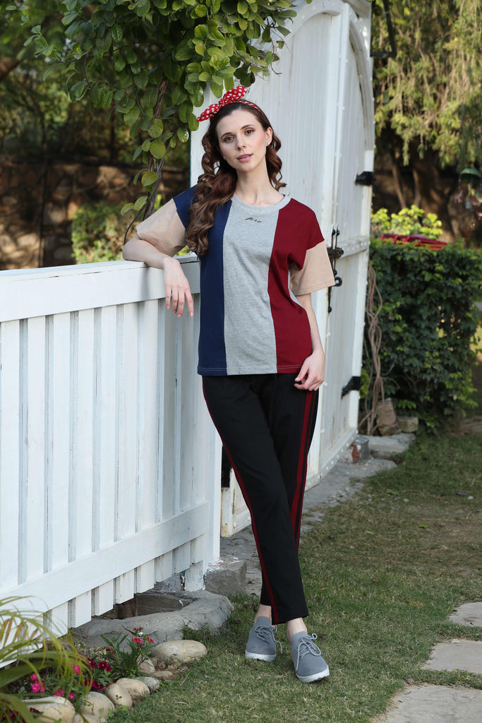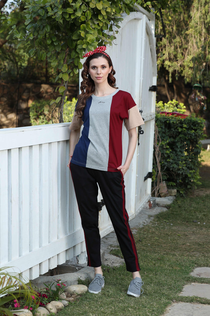 Stand out with our quad-color t-shirt paired with straight-fit bottoms. This vibrant set combines bold design with a relaxed silhouette, perfect for making a statement while staying comfortable.