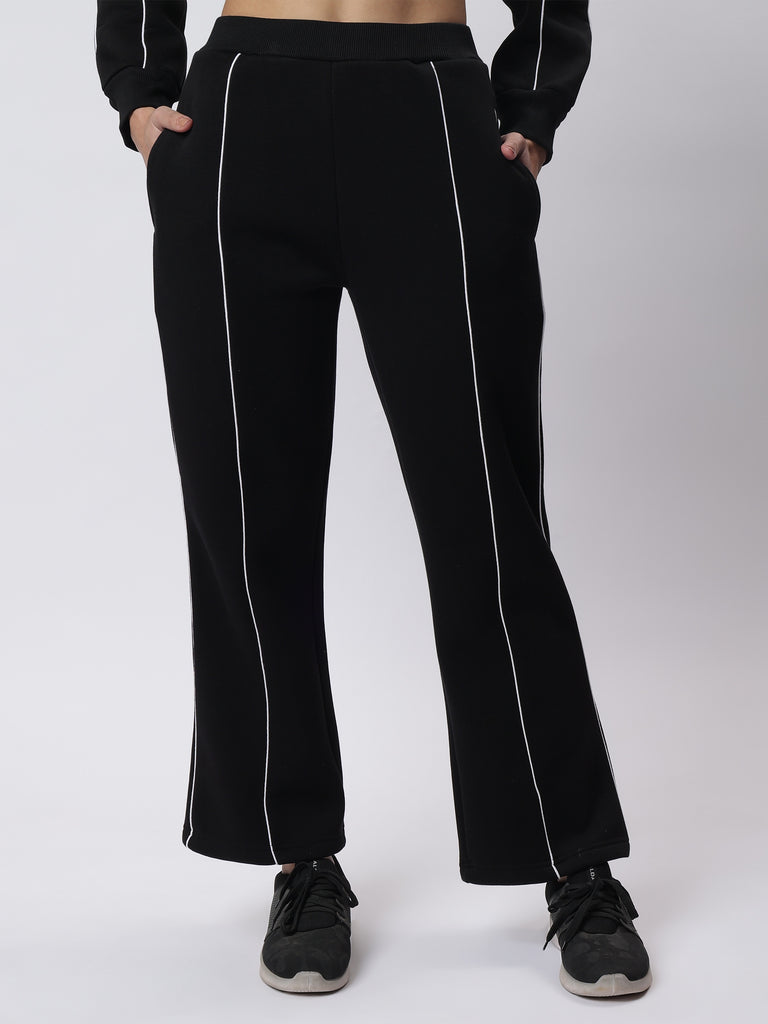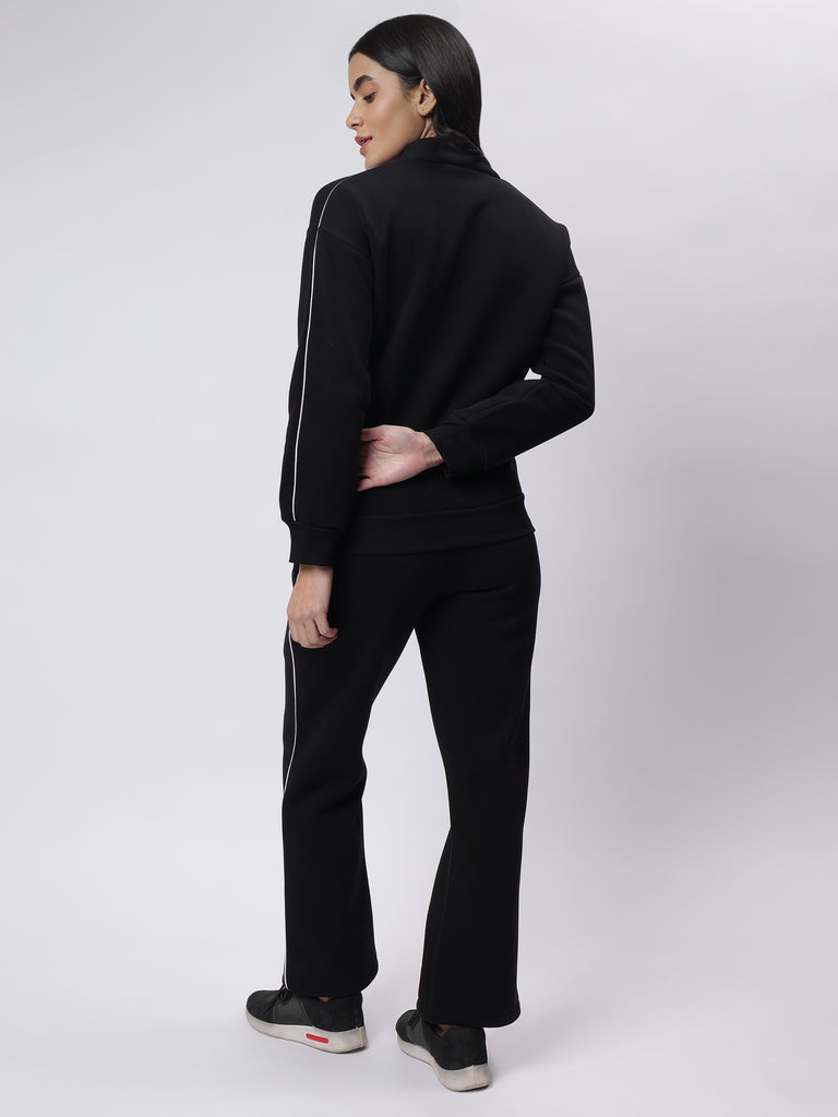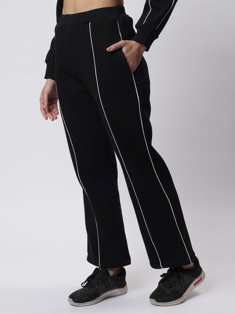 Elevate your style with the Luxe Black Contrast Piping Co-ord Set, designed to offer the perfect blend of modern elegance and comfort. Made with premium three-thread fleece fabric, this set is a winter wardrobe essential.