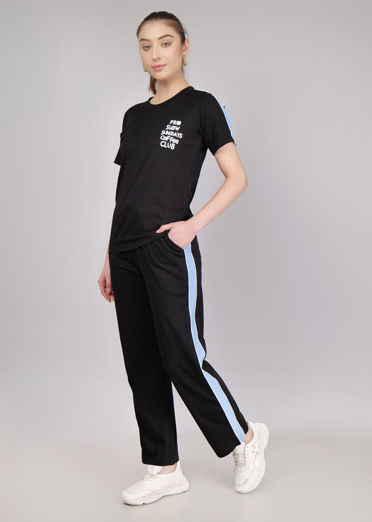 This coord set is perfect for anyone who enjoys a great cup of coffee on a lazy Sunday morning. It's designed to be comfortable and stylish, making it ideal for relaxing at home. Whether you're lounging around or starting your day with a cozy moment, this set adds a touch of relaxation and style to your weekend routine.