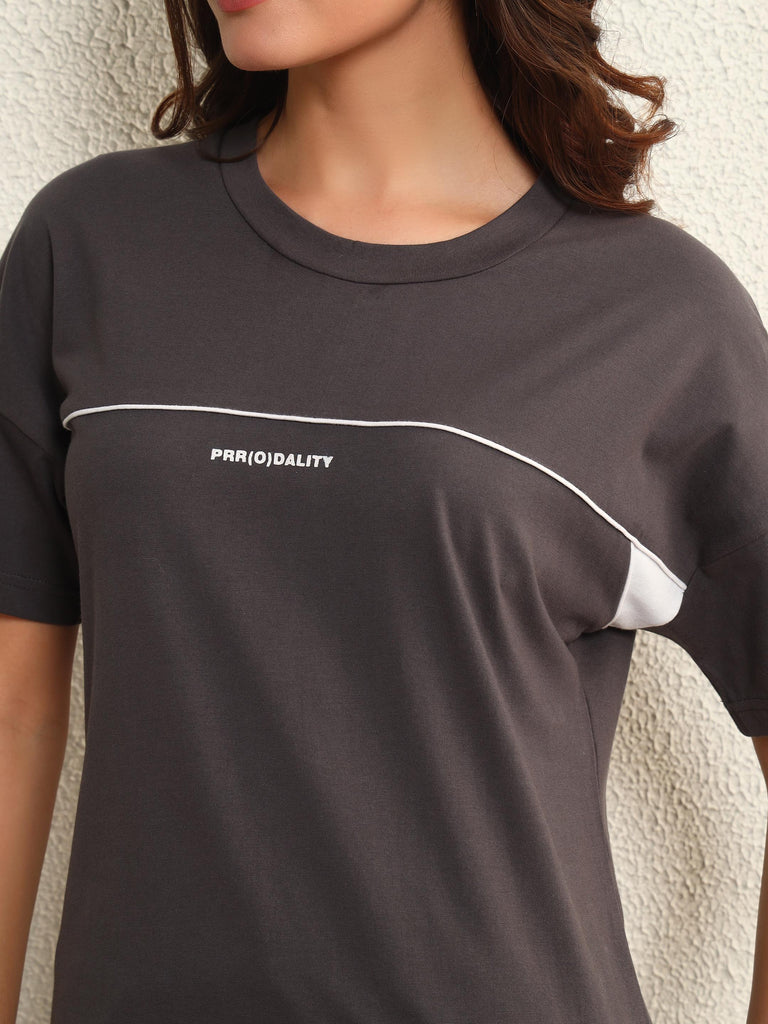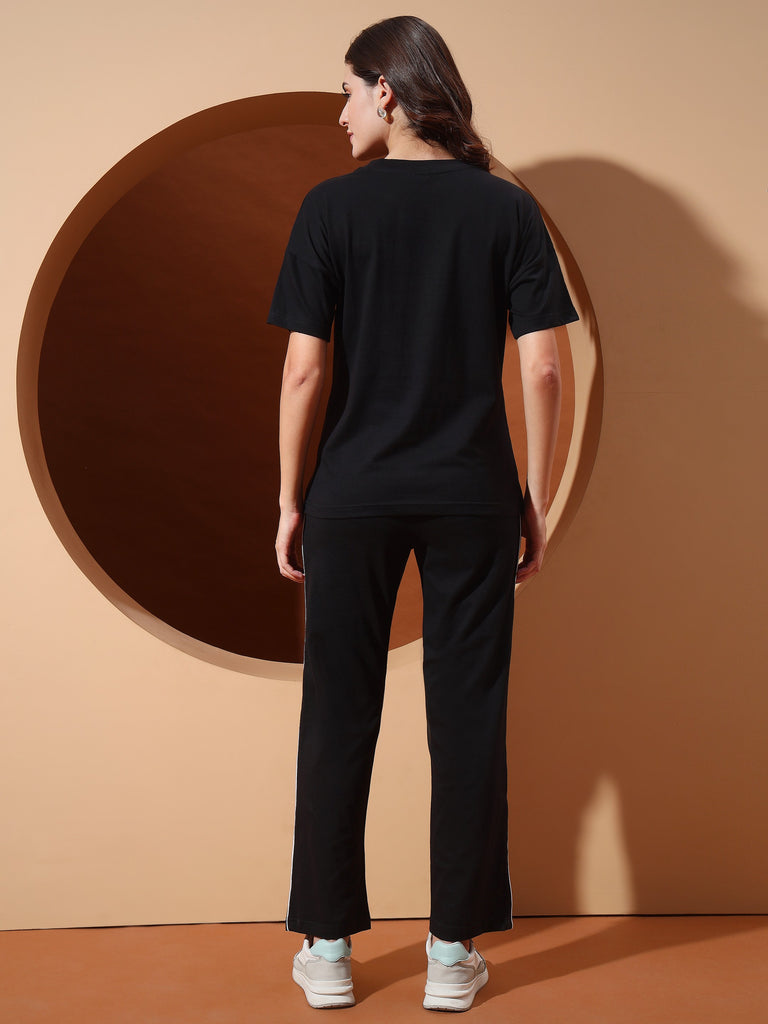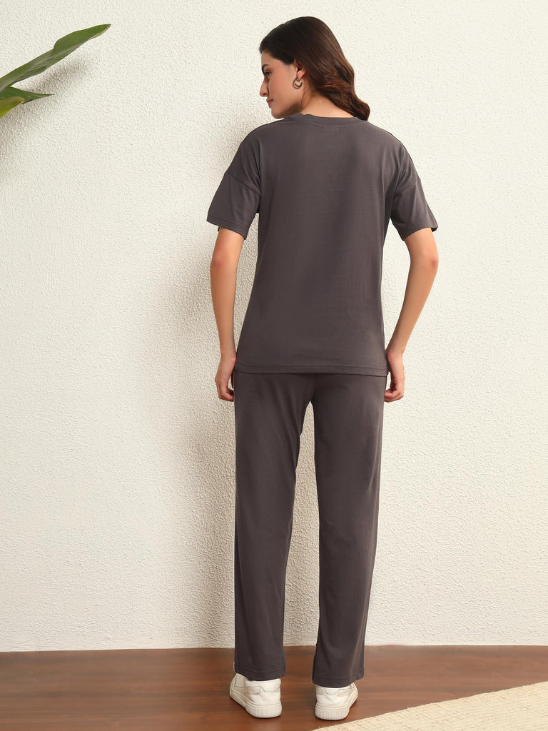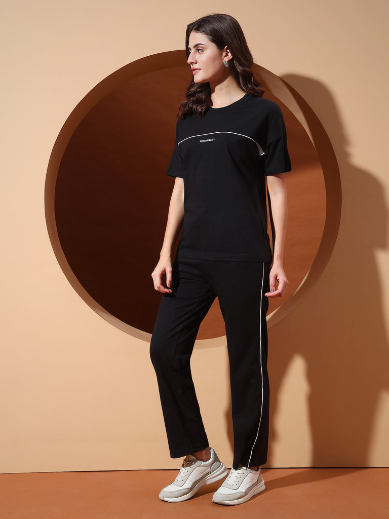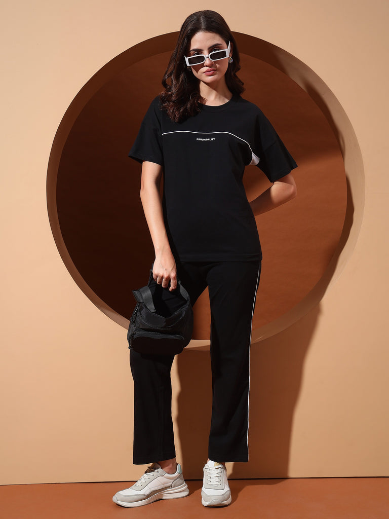 Minimalist meets mood in this effortless co-ord made for movement, mood, and maximum comfort. Crafted from super combed cotton, the tee features piping and panel detailing, while the straight-fit pants complete the set with classic ease and subtle branding.