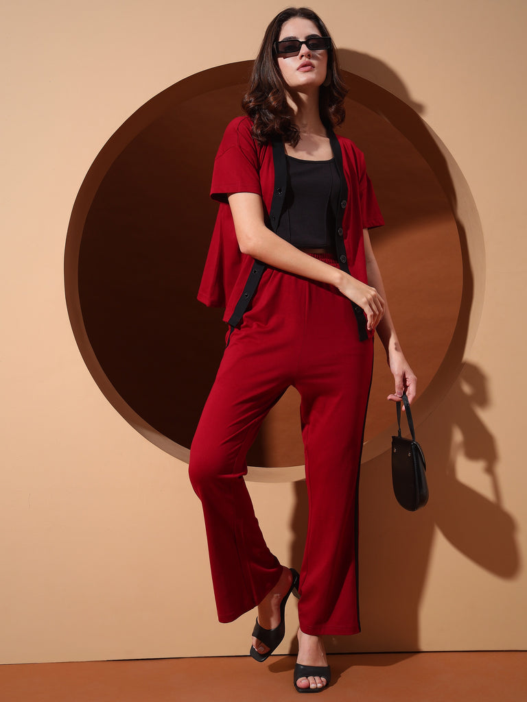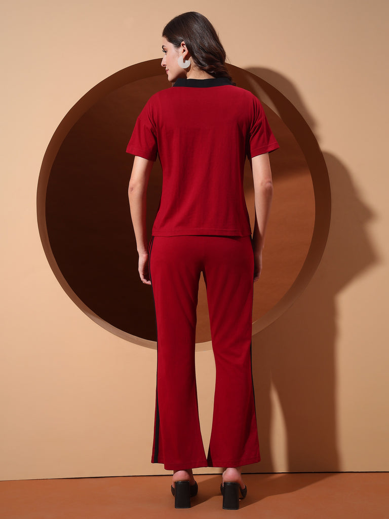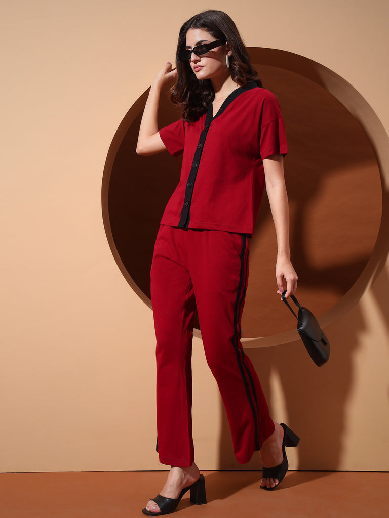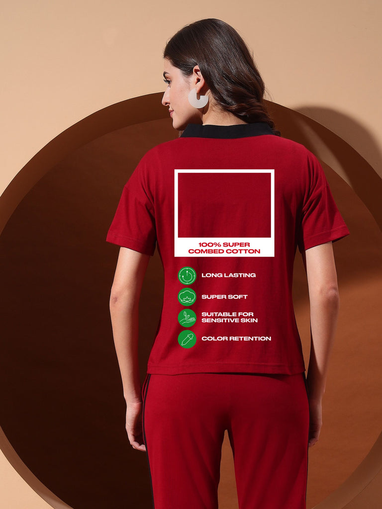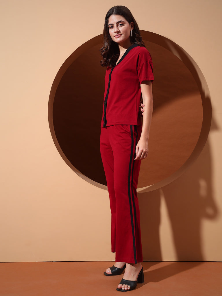 Elevate your downtime look with this bold red and black co-ord set—crafted in super combed cotton for all-day ease. From AM errands to PM lounging, this one set does it all.