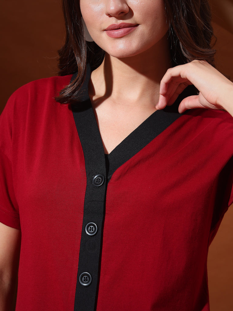 ✔️ Relaxed V-Neck with Button Closure — Chic and breathable with contrast black detailing
