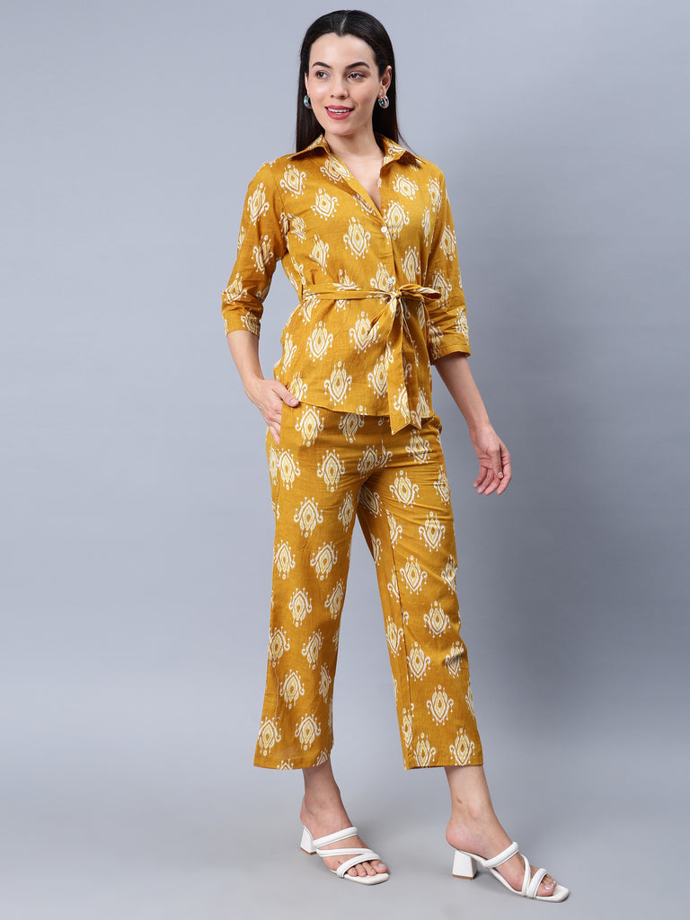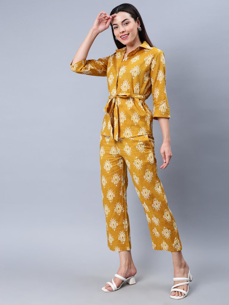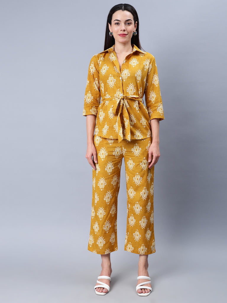 Turn everyday dressing into an effortless statement with our Mustard Ikat Co-ord Set. Crafted from 100% woven cotton for that crisp, shirt-like structure, this set blends timeless Indian patterns with a modern silhouette. Whether you're lounging, brunching, or office-hopping β this one's your easygoing all-rounder.