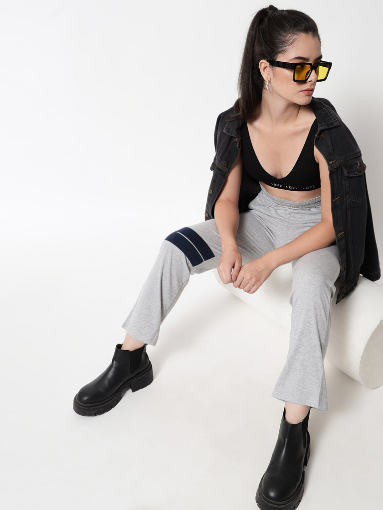 Bring effortless style and unmatched comfort to your everyday wardrobe with our Grey Contrast Panel Joggers. Designed for all-day wear, these straight-fit joggers feature a sporty navy side stripe and a flattering high-waist silhouette. Whether you're lounging at home, running errands, or heading out for a casual brunch — these bottoms are made to move with you.