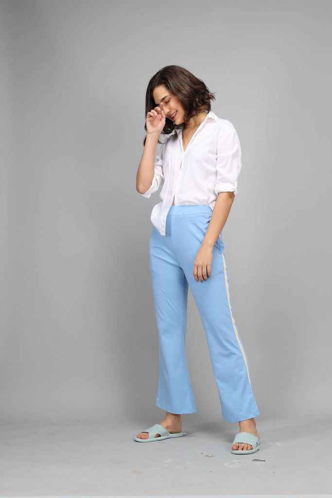 Step into relaxed confidence with our flared lounge pyjamas – the perfect blend of comfort, style, and movement. Designed for everyday wear, these bottoms feature a flattering flare and sporty contrast tape detail, making them ideal for everything from lounging to casual outings.