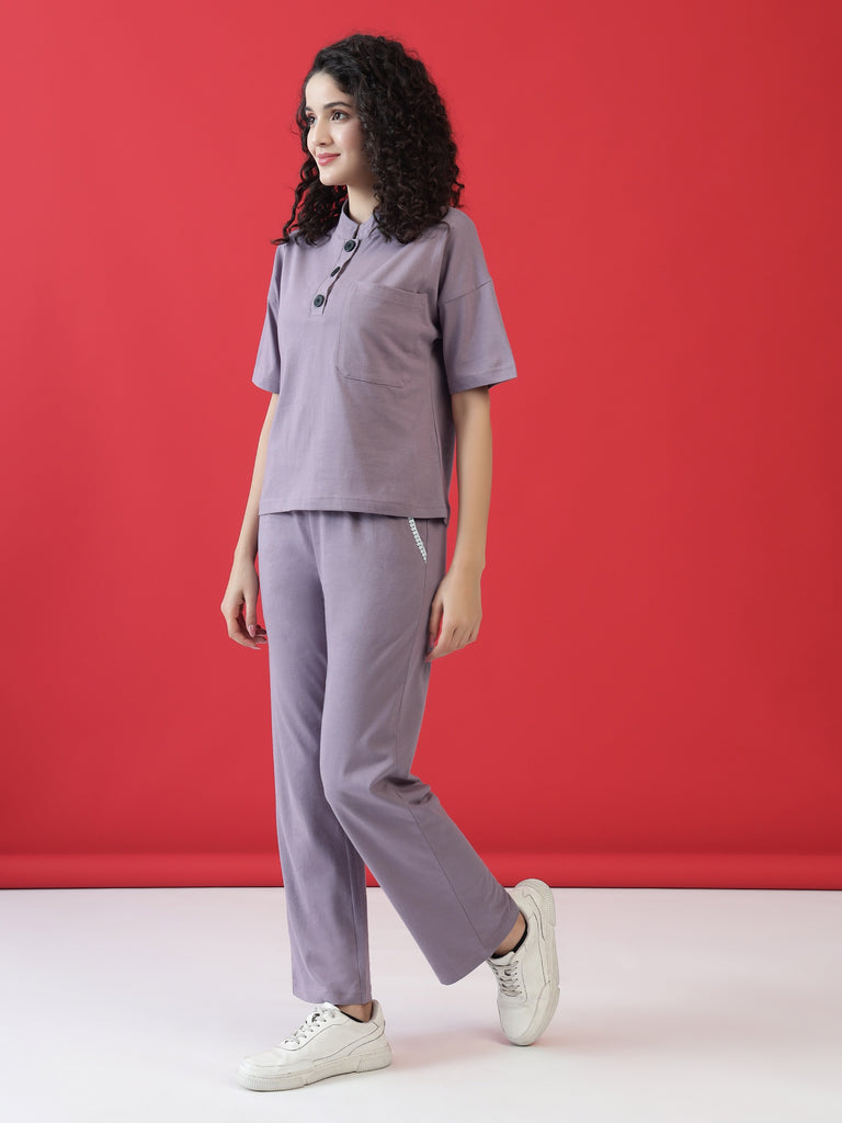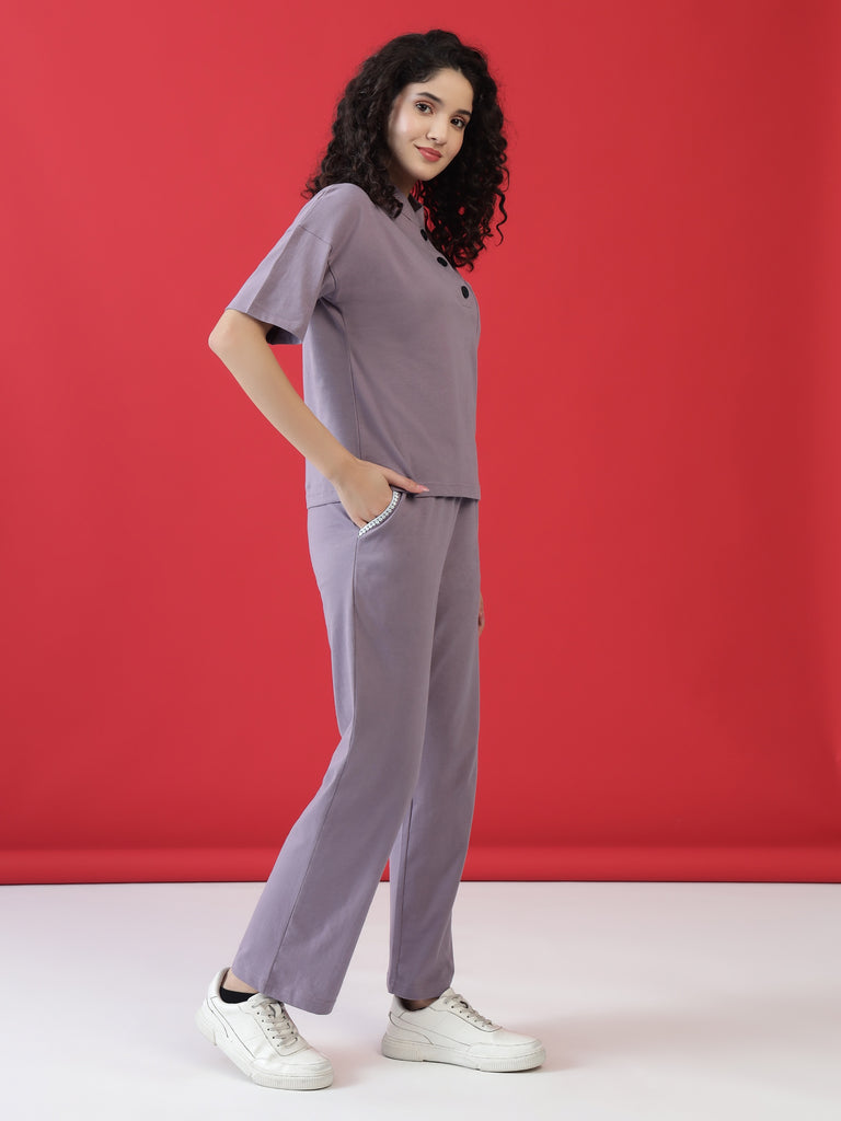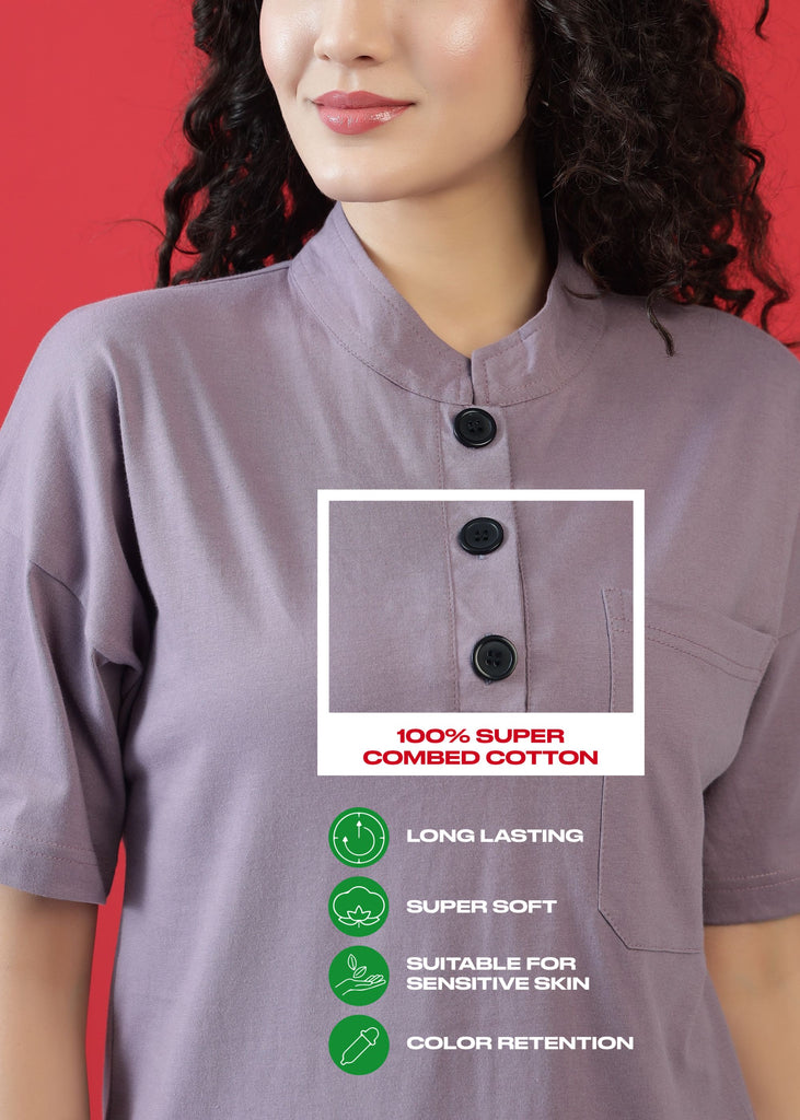 Upgrade your everyday style with the Mauve Frill Detail Buttoned Slounge SetΒ β a perfect blend of relaxed elegance and casual comfort. Crafted from premium super combed cotton, this set is designed to keep you effortlessly stylish and comfortable all day long.