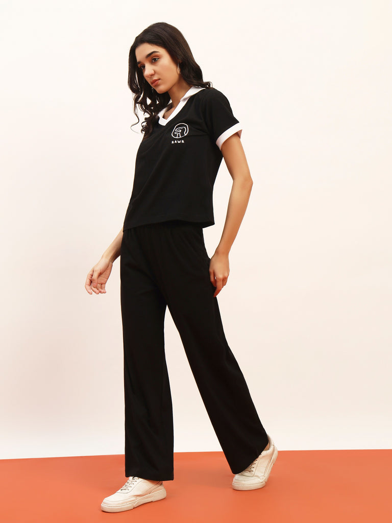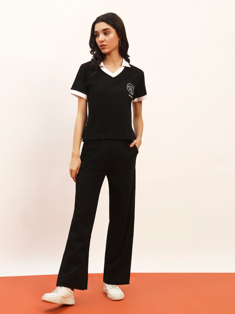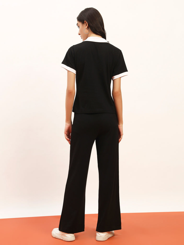 Step into everyday sophistication with our Monochrome Edge Co-ord Set. Featuring crisp white contrasts and a bold chest print, this set brings casual cool and relaxed comfort together — perfect for lounging or heading out in style.