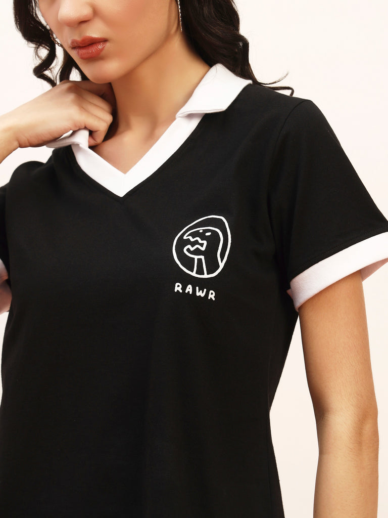 ✔️ V-Neck with Collar — Sporty yet chic neckline with white contrast