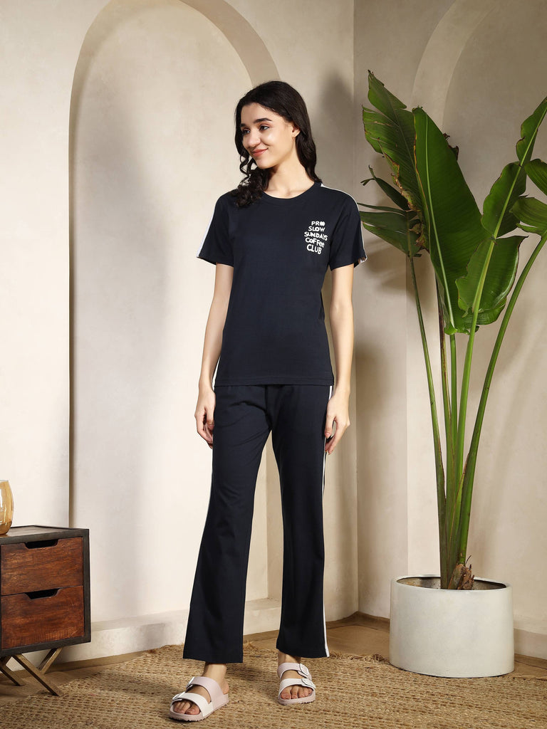 This co-ord set is perfect for anyone who enjoys a great cup of coffee on a lazy Sunday morning. It's designed to be comfortable and stylish, making it ideal for relaxing at home. Whether you're lounging around or starting your day with a cozy moment, this set adds a touch of relaxation and style to your weekend routine.