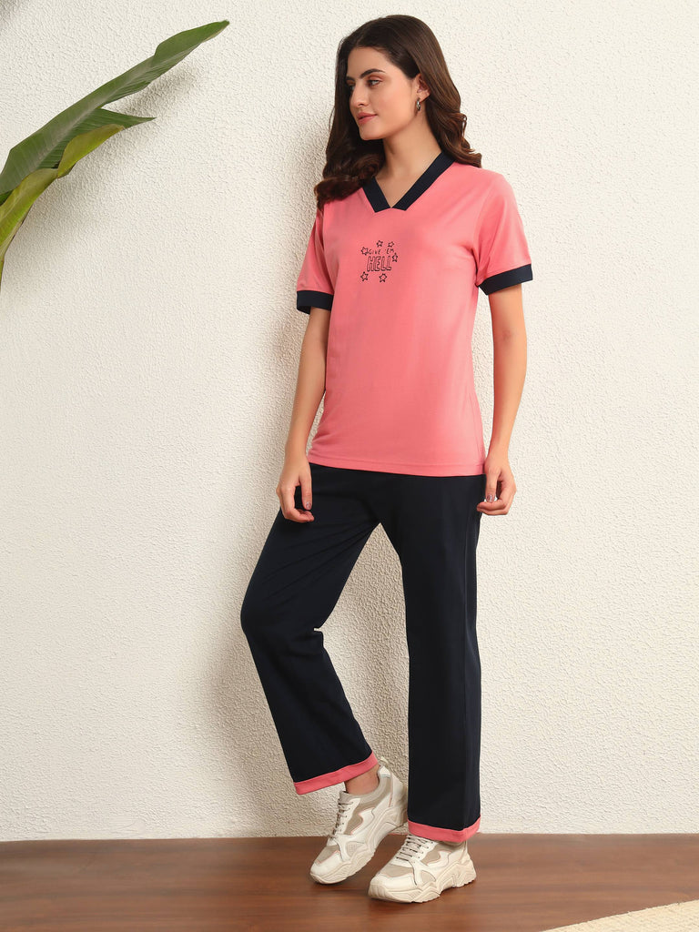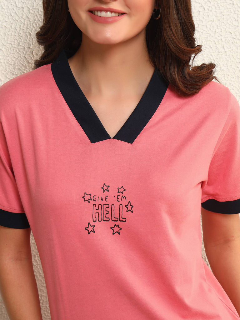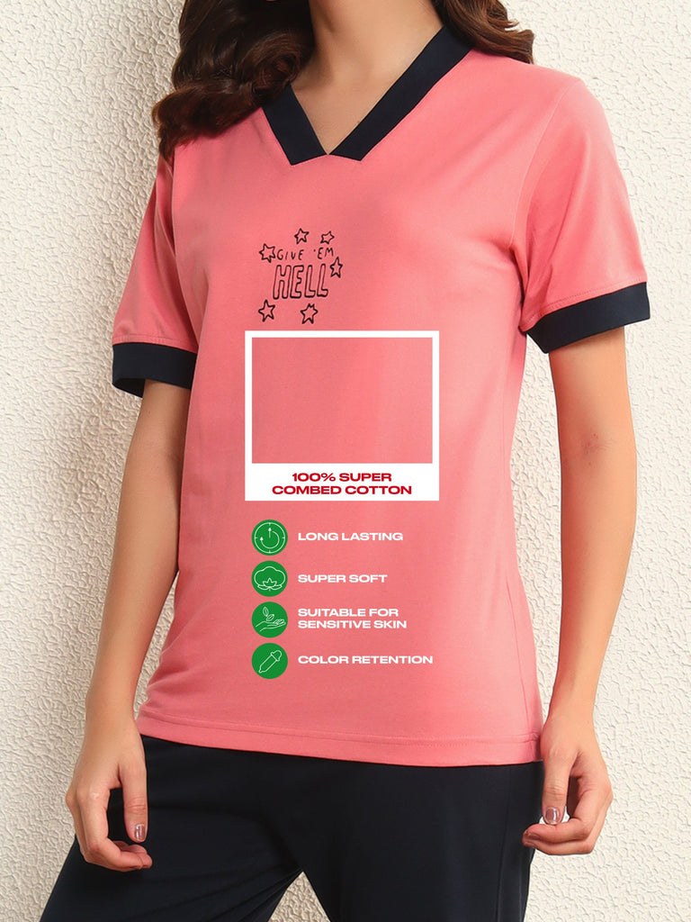 For the days when you’re sweet with a side of savage — this co-ord set is all about comfort with an edge. Crafted from soft, breathable cotton, the bold "Give 'Em Hell" tee pairs effortlessly with the contrast-cuffed pyjamas for a look that’s as fierce as it is functional.
