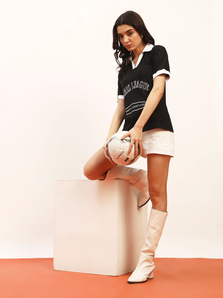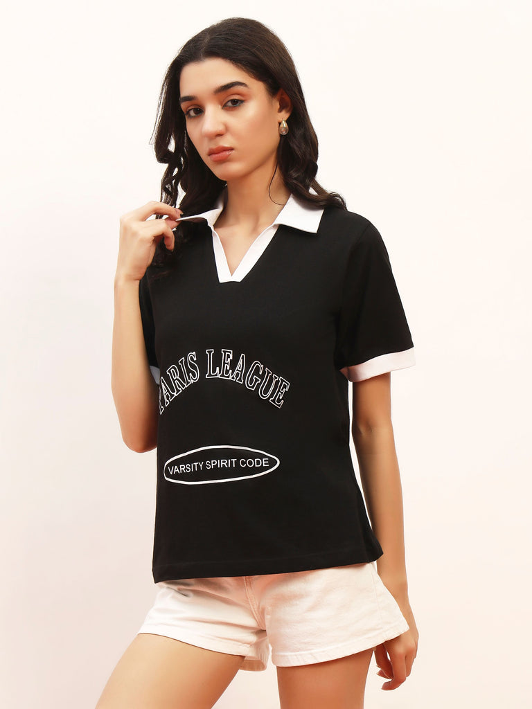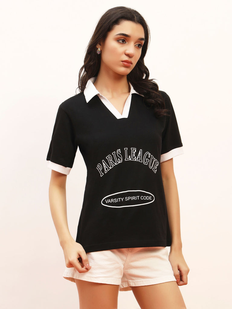 Step up your off-duty style with the Paris League Varsity Collar T-Shirt — sporty, chic, and effortlessly cool. With its classic contrast collar and bold varsity-inspired chest print, this tee is perfect for game days, casual hangs, or just channeling that preppy spirit.