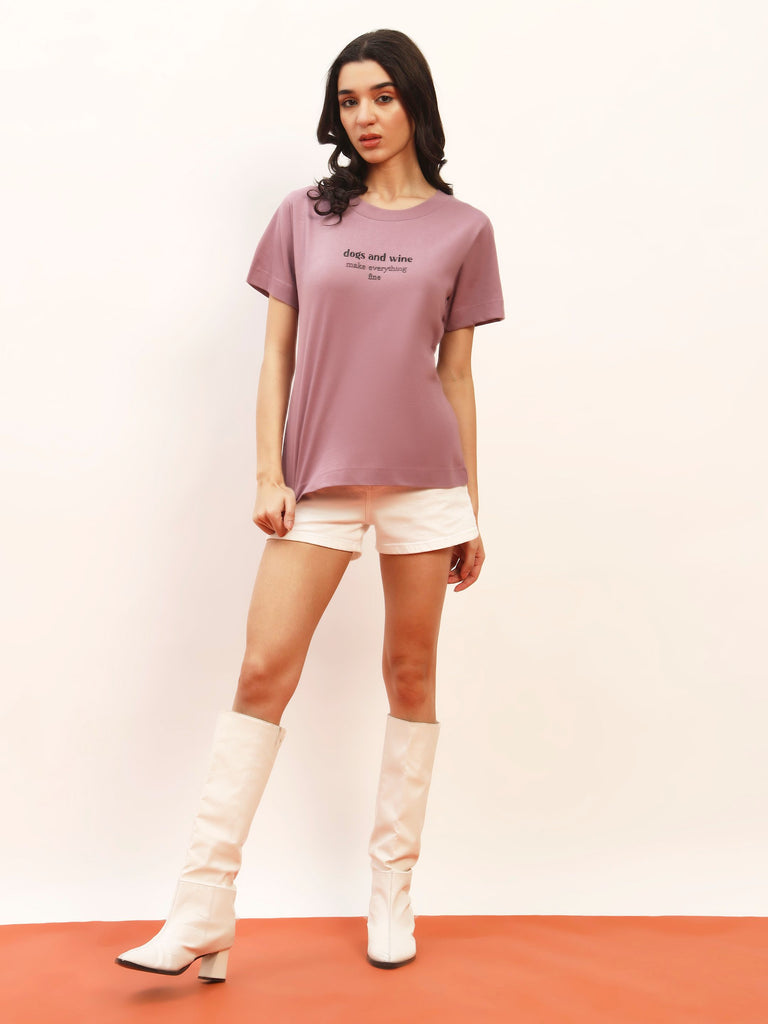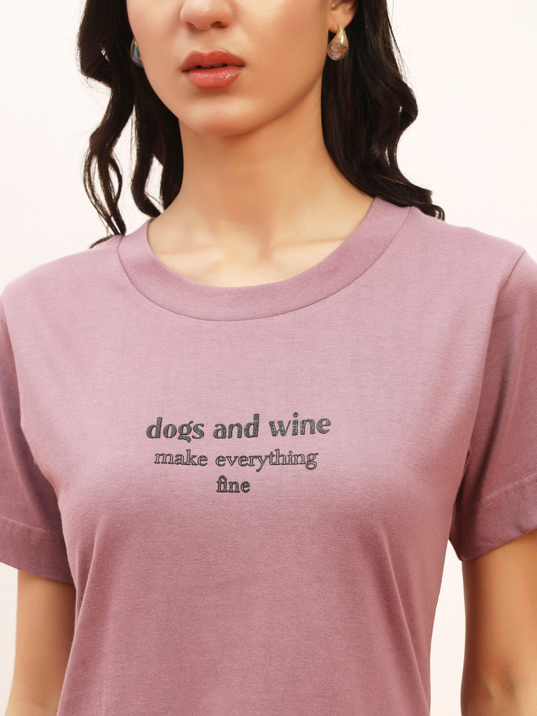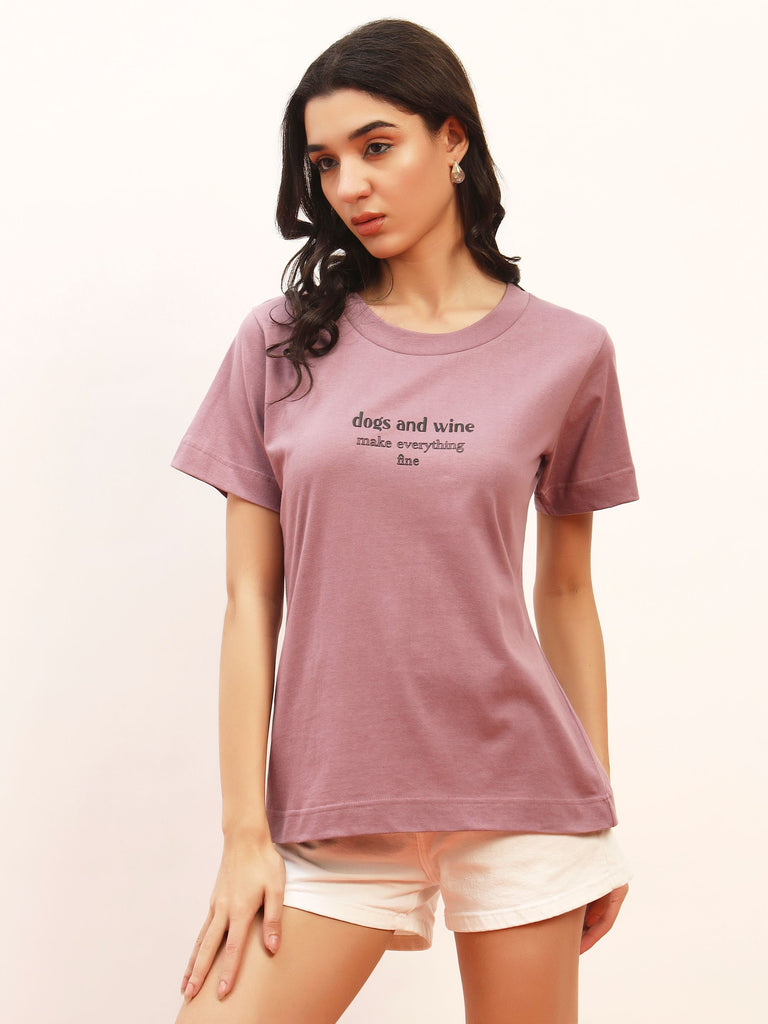 Stay playful yet chic with our Sip & Smile Graphic T-Shirt. Featuring a fun printed quote “dogs and wine make everything fine”, this tee is perfect for dog lovers, wine lovers — and everyone who believes in good vibes. Crafted in ultra-soft cotton, it’s breathable, lightweight, and effortless for lounging, brunching, or casual strolls.