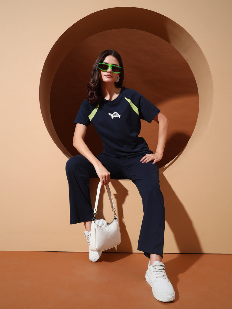 This navy co-ord set brings together chill vibes and cheeky style. With turtle graphic detailing and contrast lime panels, it's designed for the sloungewear life – comfy enough to sleep in, cool enough to step out in.