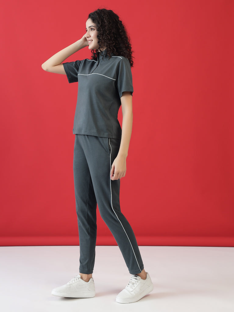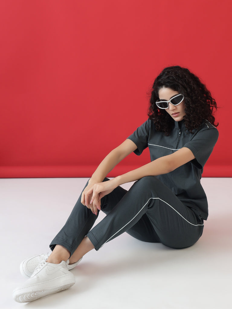 Upgrade your wardrobe with this ultimate Zip & Piping Slounge Set , designed for lounging, quick errands, and everything in between. .