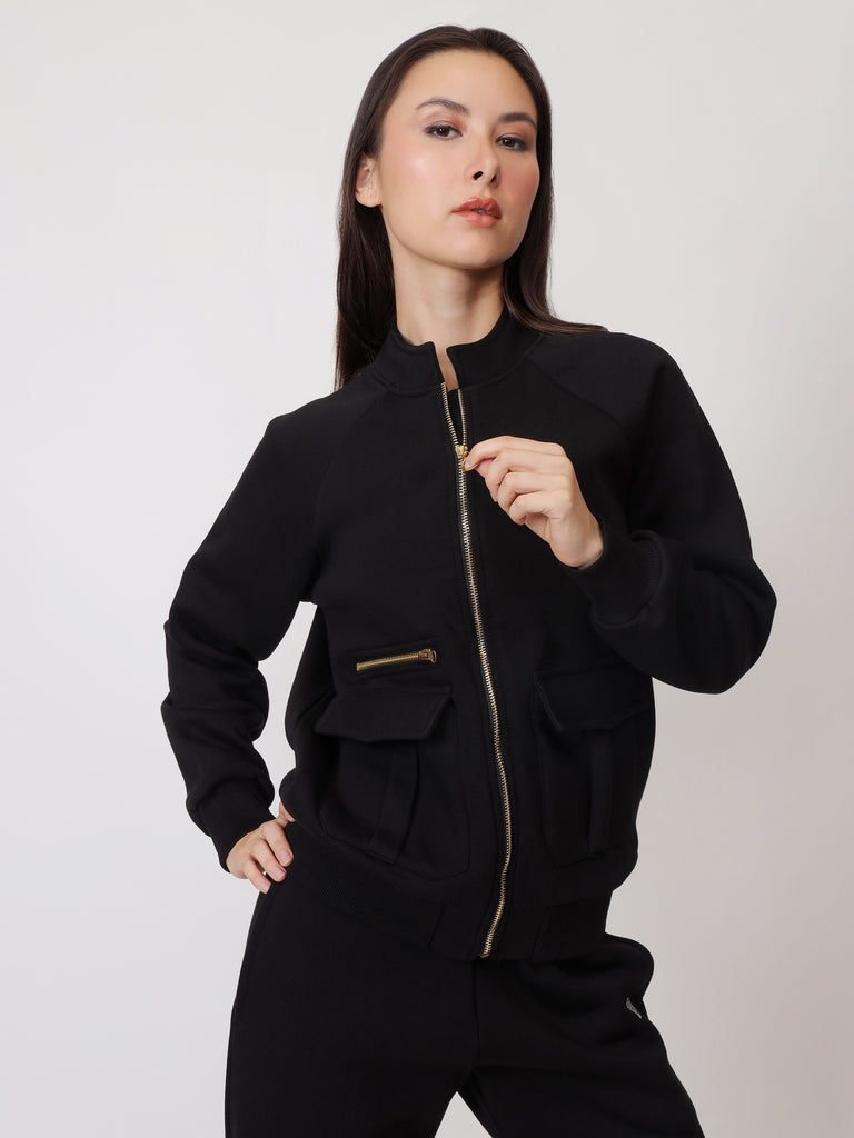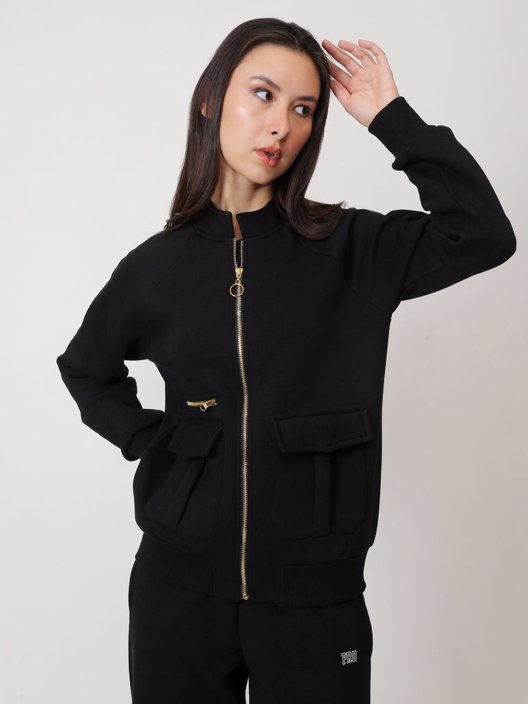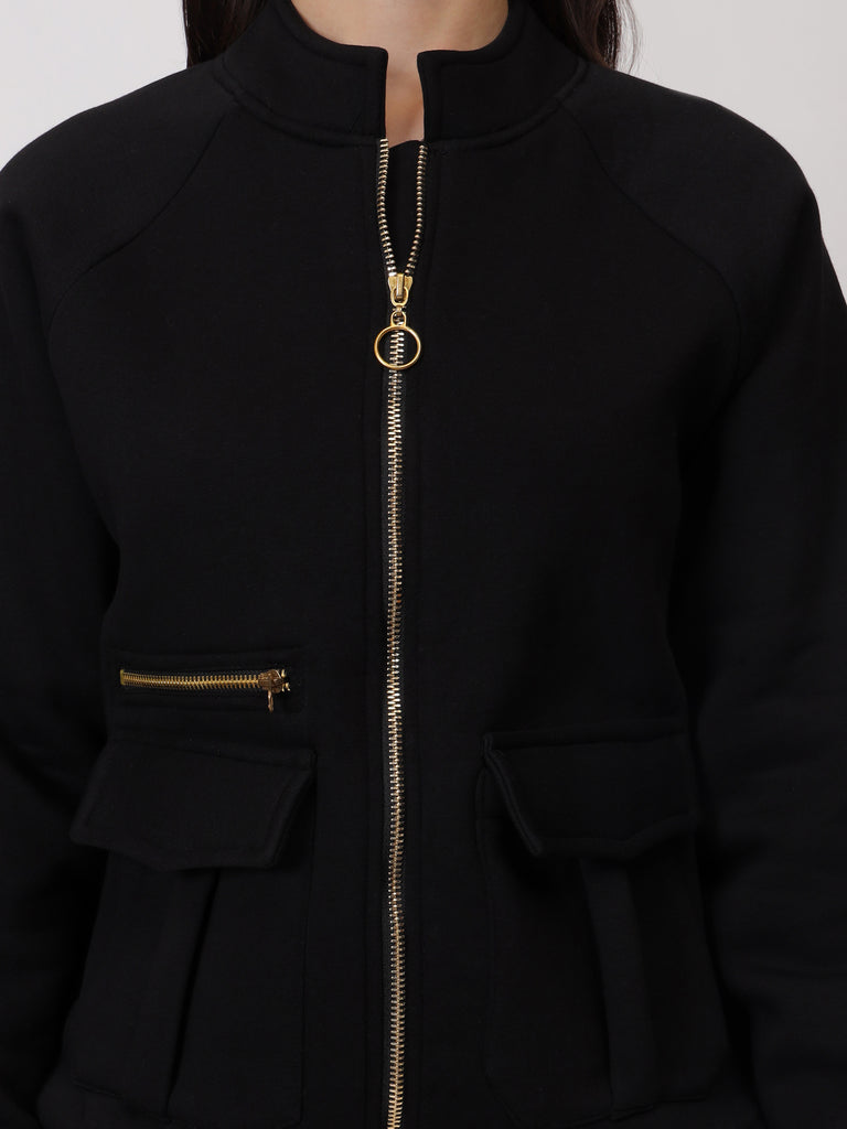 Utility-Chic Design: Features flap pockets and a sleek golden zipper for a modern, practical look.