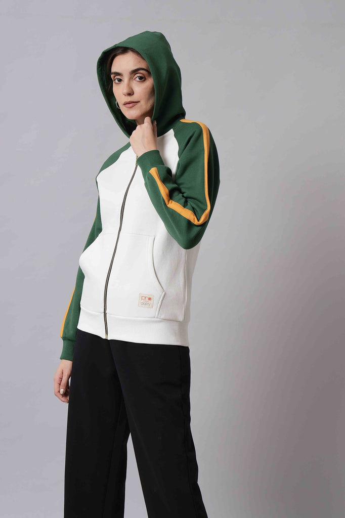 Stay ahead of the trend with Prrodality’s Sporty Green & White Color-Block Sweatshirt—a perfect blend of fashion and function for the modern wardrobe.