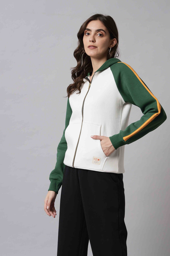 Refresh your casual wardrobe with Prrodality's Sporty Green & White Color-Block Sweatshirt. Featuring a contemporary design with bold green sleeves and vibrant yellow accents, this sweatshirt combines modern aesthetics with ultimate comfort. Perfect for a sporty, on-the-go vibe, it's crafted to keep you stylish and cozy through the seasons.