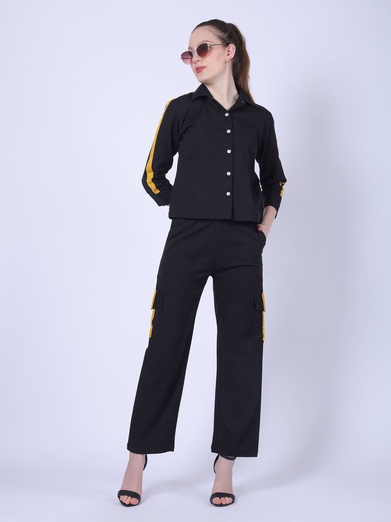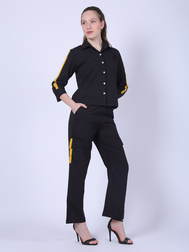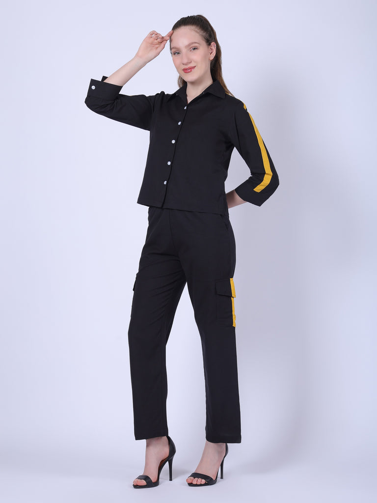 Pro Tip: Style this black and yellow co-ord set with white sneakers or sleek heels for a polished yet casual vibe. Ideal for casual outings, travel days, or even relaxed work settings, this set is a must-have for anyone exploring co-ords online.