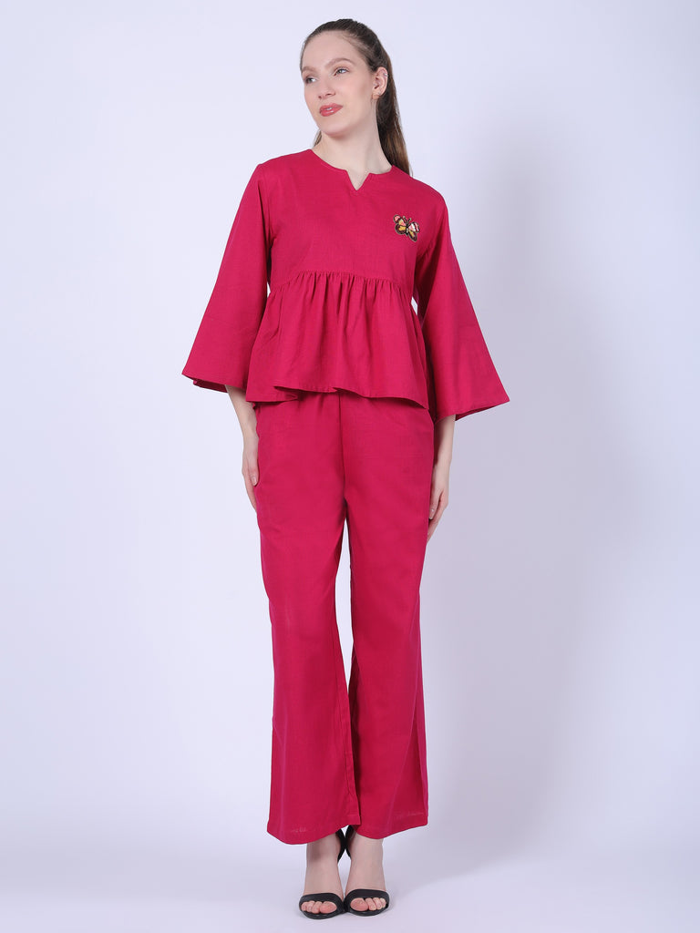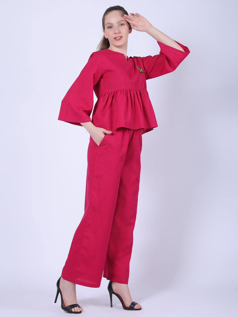 Turn heads effortlessly with the Raspberry Bloom Co-ord Set, an irresistible blend of bold color and timeless style. Designed to offer unparalleled comfort and elegance, this co-ord set is crafted from 100% Natural Cotton Weave, making it a breathable and durable choice for every occasion. Whether you’re stepping out for a casual brunch or enjoying a cozy day at home, this vibrant co-ord is your go-to outfit for standout style.