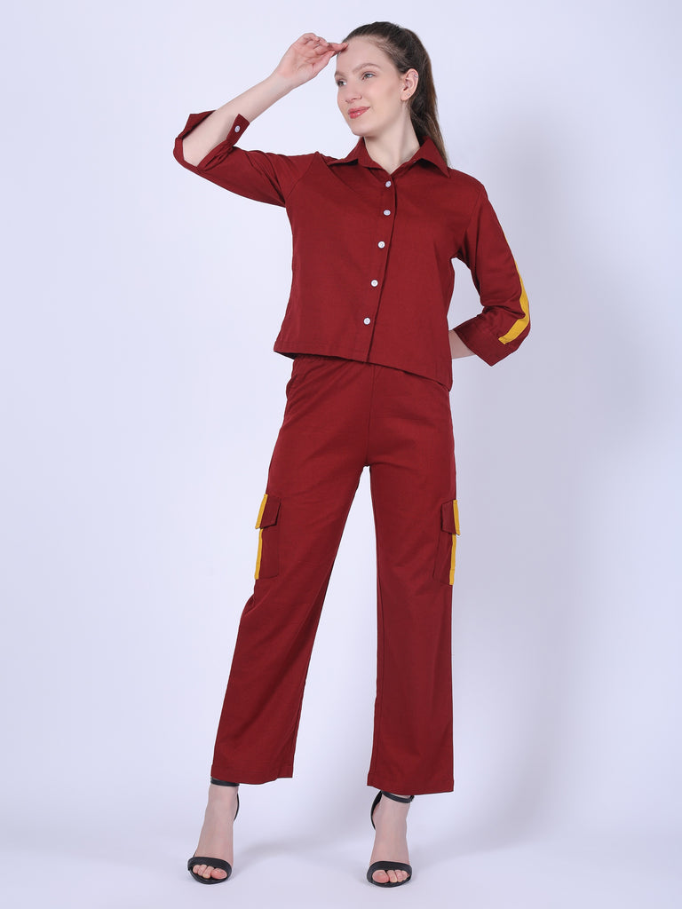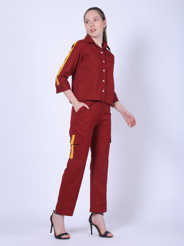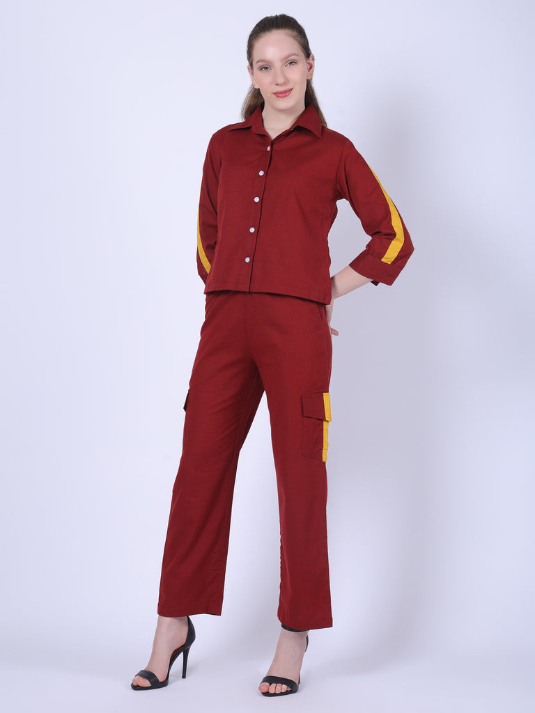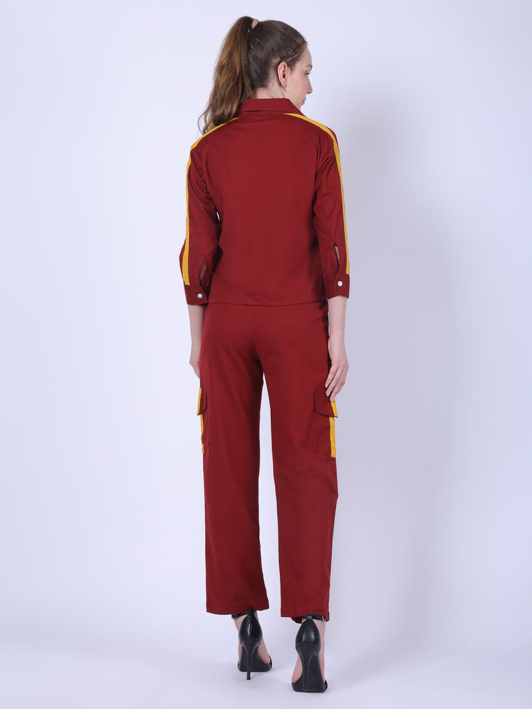 - Bold Design: The contrast yellow accents elevate the classic wine base, giving this co-ord a dynamic, sporty, and modern edge.