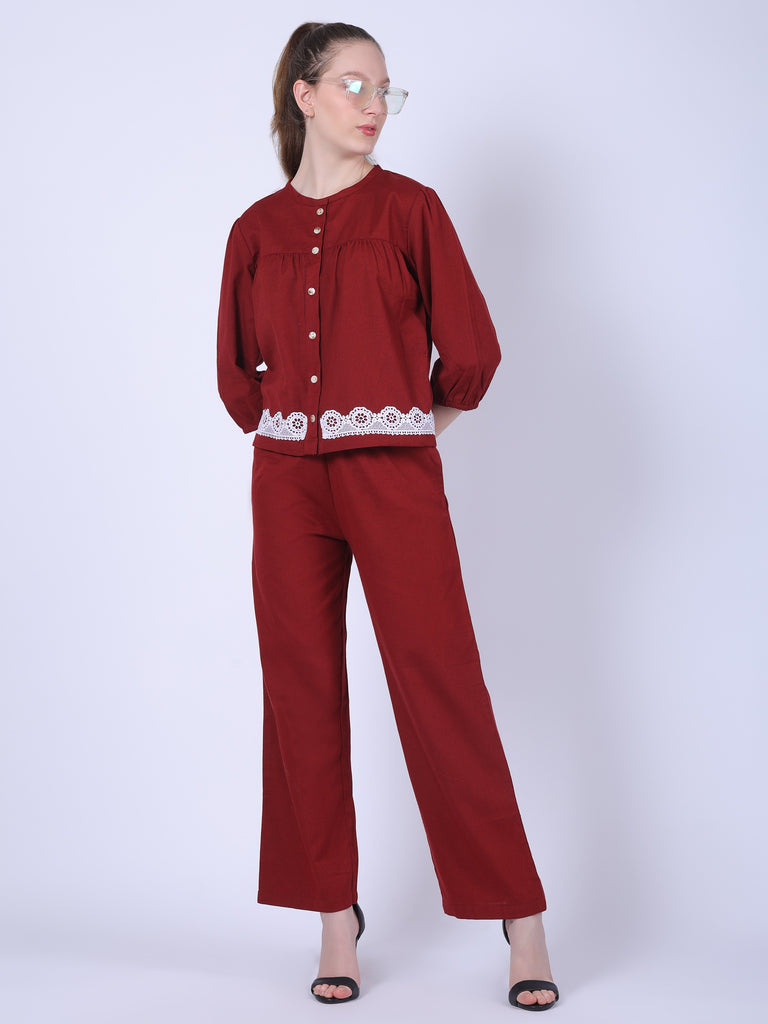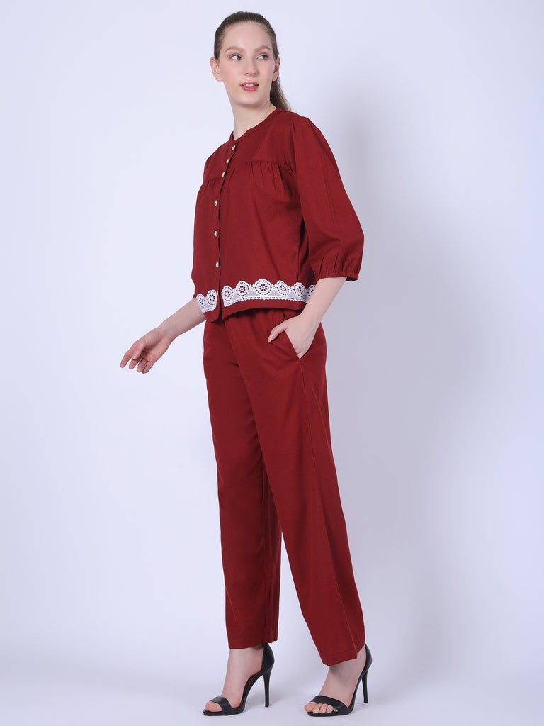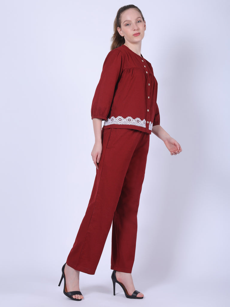 Bring effortless sophistication to your wardrobe with the Black Luxe Lace-Trim Co-ord a perfect fusion of minimalism and charm. Crafted with 100% Natural Cotton Weave fabric, this co-ord set promises unmatched comfort, breathability, and durability, making it your go-to choice for versatile styling.