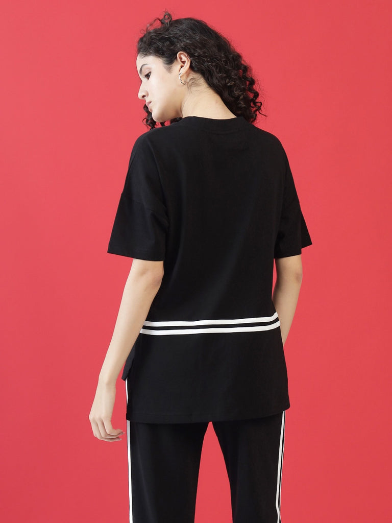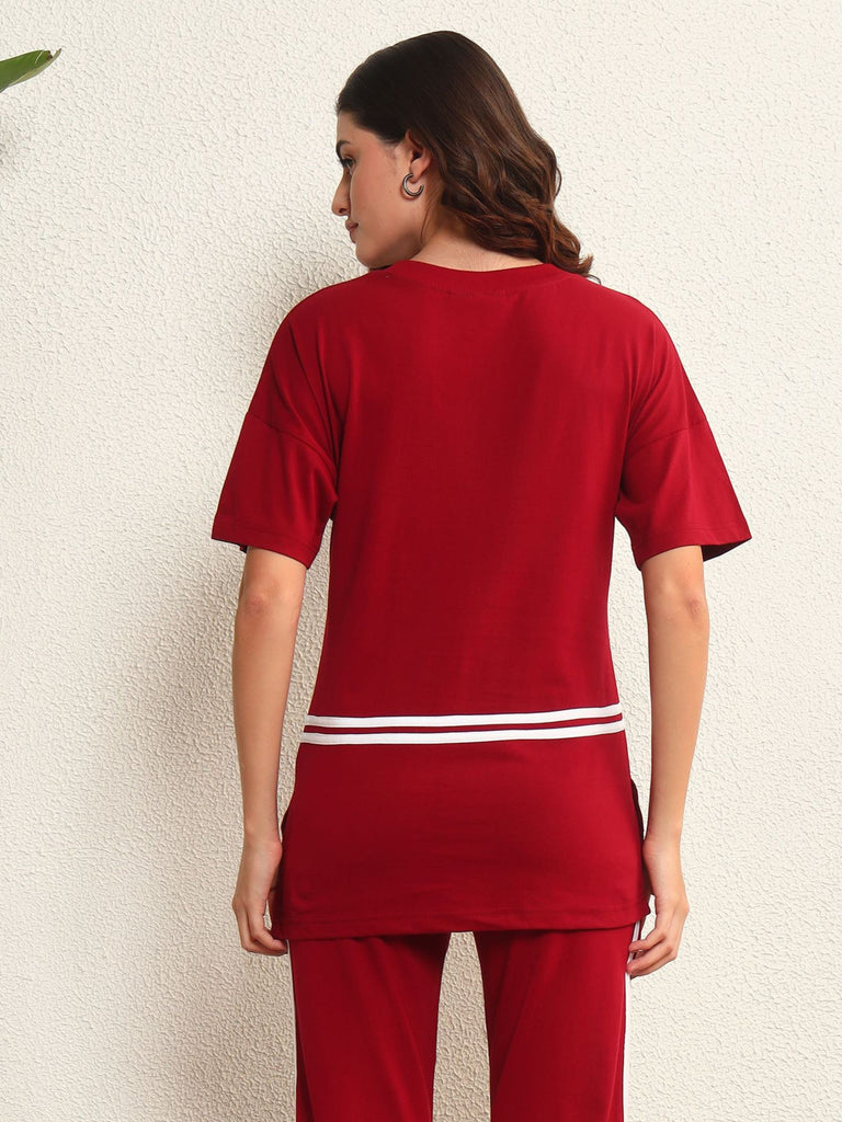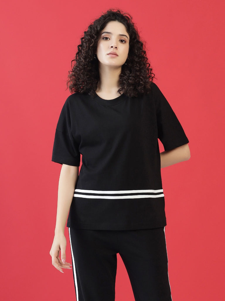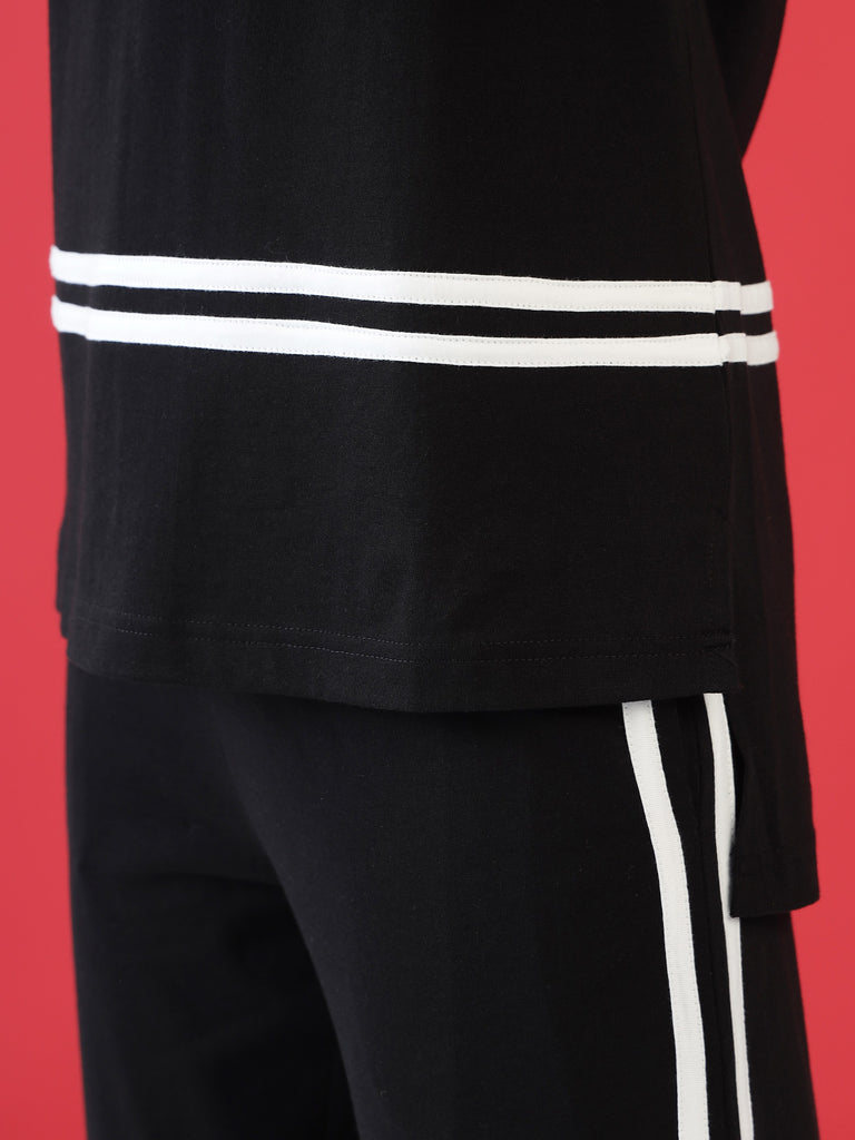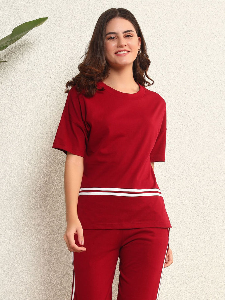 A perfect mix of sporty and chic, the The Crimson Stride T-Shirt is designed for effortless comfort and style. With bold contrast stripes and a relaxed silhouette, it’s perfect for lounging or stepping out in style.
