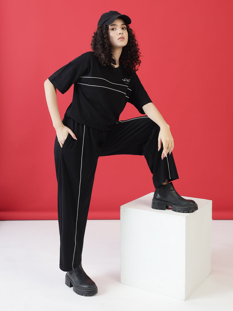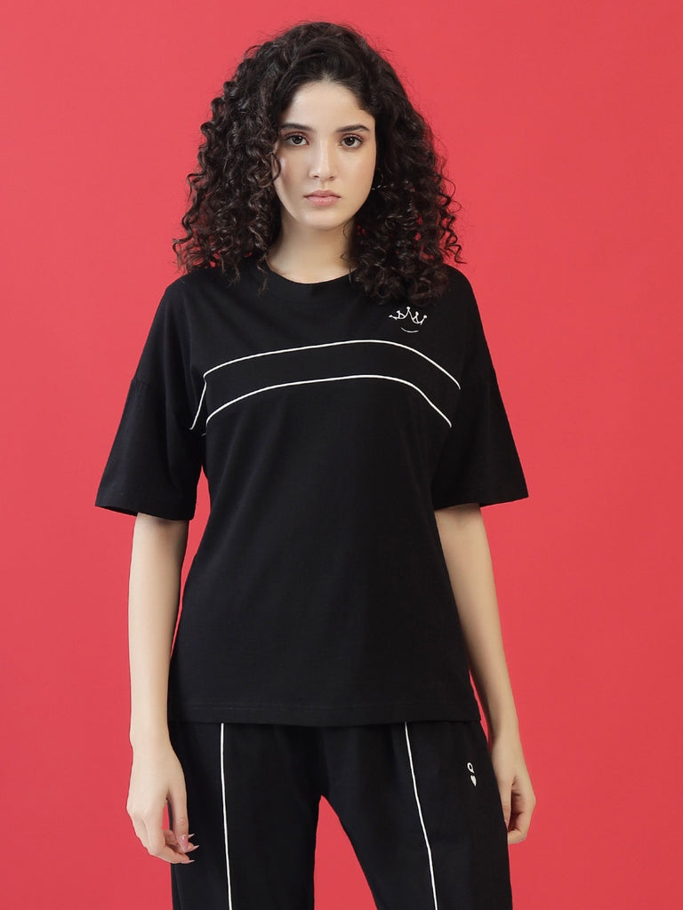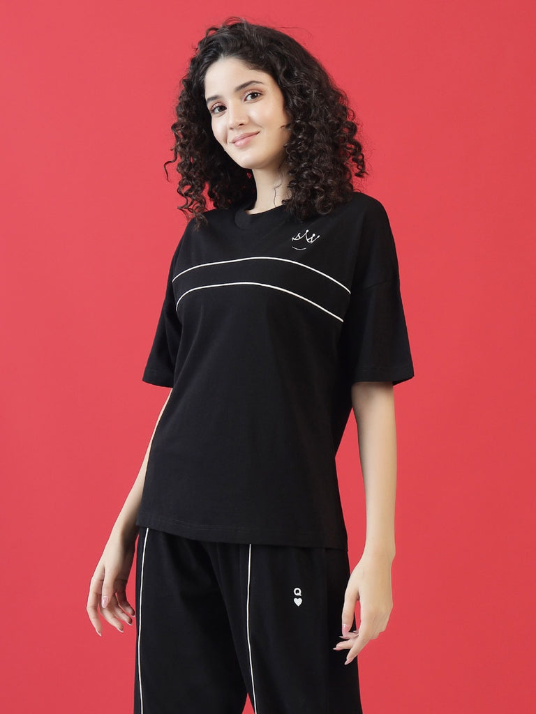 Stay stylish and effortlessly comfortable with the Queen's T-Shirt , designed for lounging, casual outings, and everything in between. Featuring a regal crown print on the T-shirt and a Queen 'Q' detail on the pyjamas, this set is perfect for those who love to relax in style while making a statement. Crafted from 100% super combed cotton, it’s breathable, skin-friendly, and long-lasting.