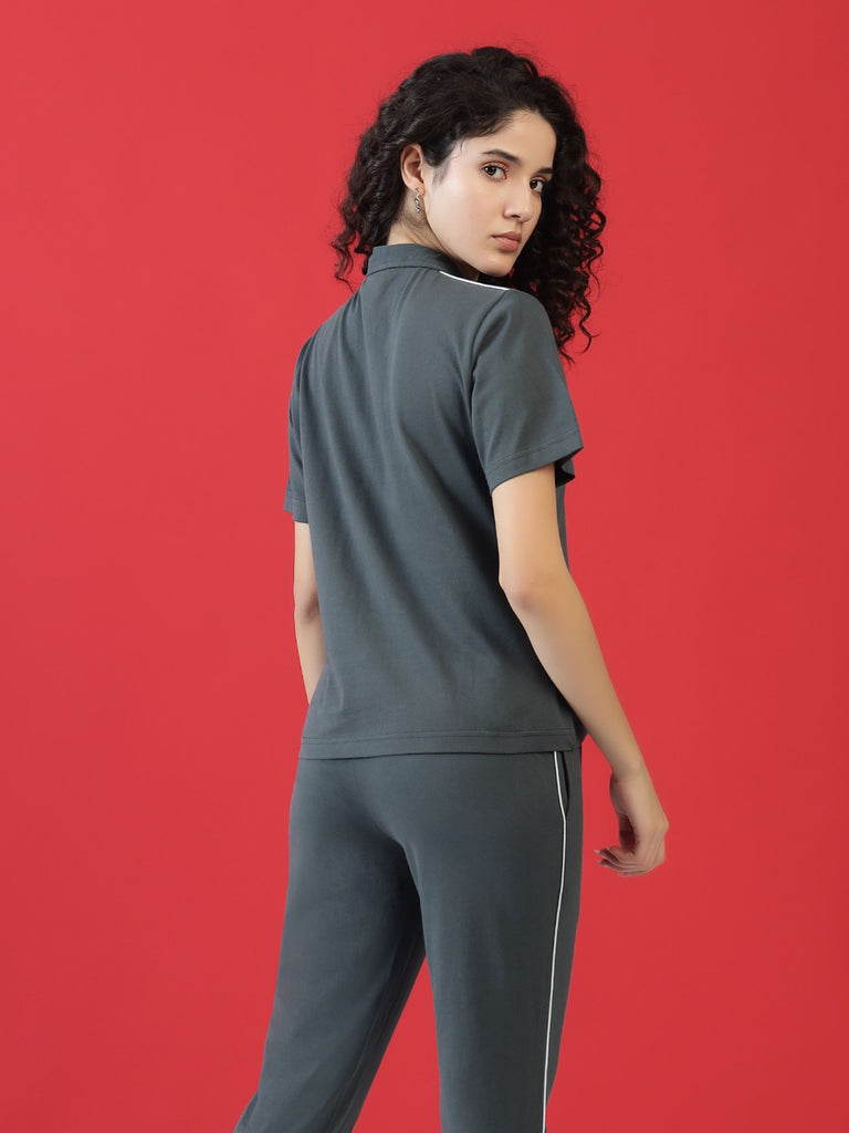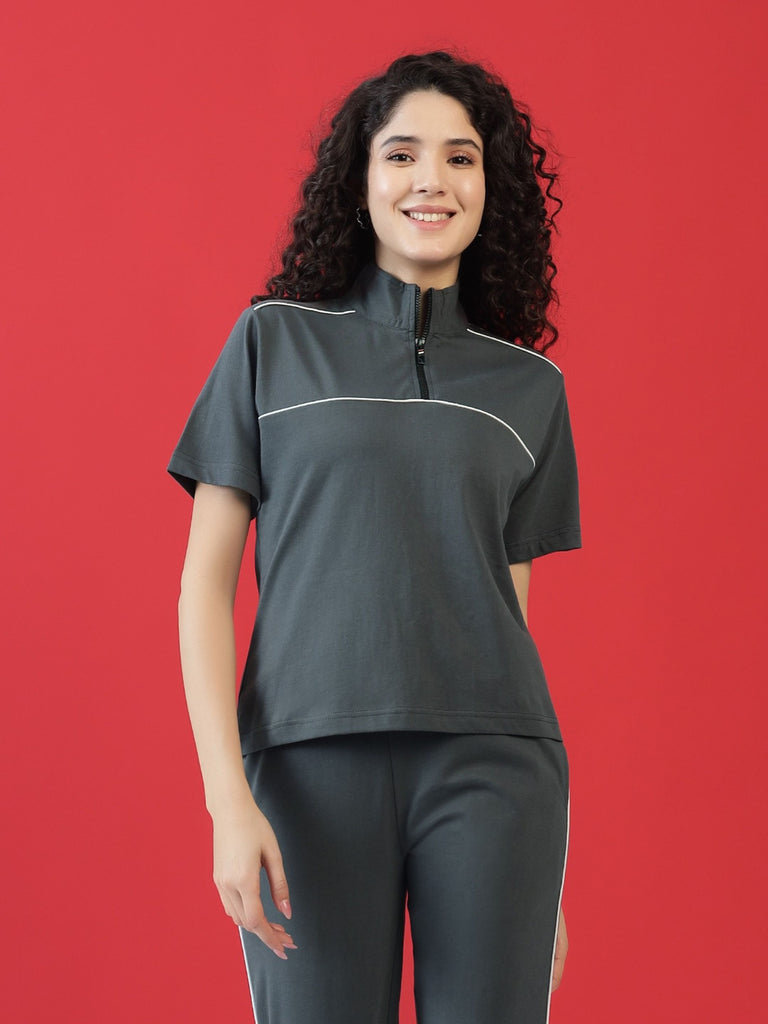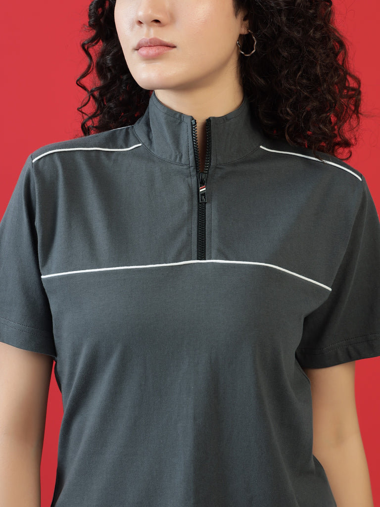 Upgrade your wardrobe with this ultimate Zip & Piping T-Shirt , designed for lounging, quick errands, and everything in between. .