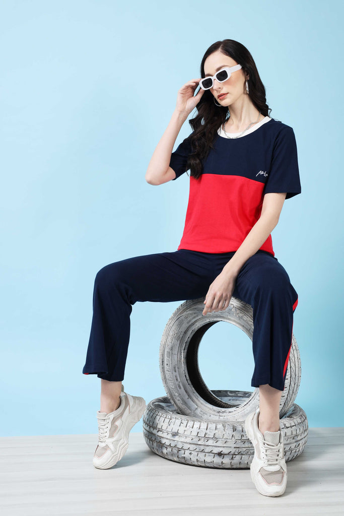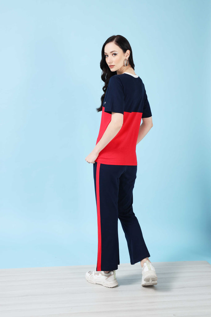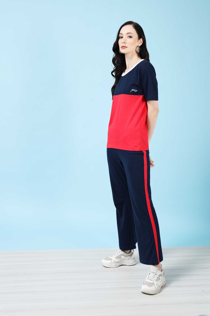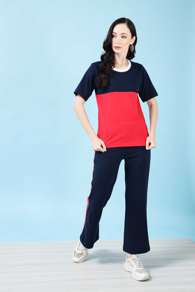 Red & Navy Chic Coord Set: T-Shirt and Flare Bottoms