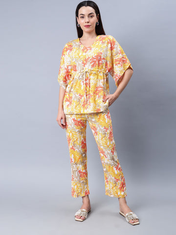 Step into easy-breezy comfort with our Sunset Bloom Co-ord Set. This two-piece outfit pairs a drawstring-waist top with straight-fit bottoms, both featuring a vibrant all-over floral print in summery tones. Whether you're working from home, lounging on the weekend, or stepping out for a casual brunch β this is comfort, elevated.